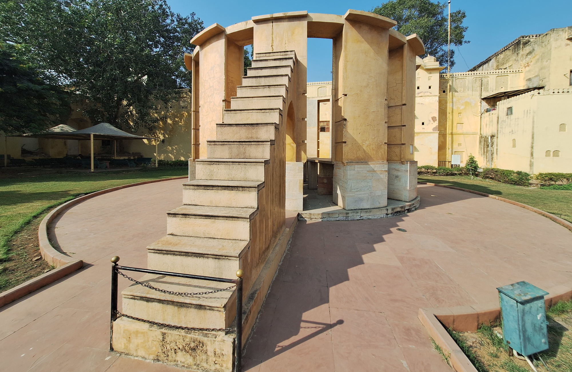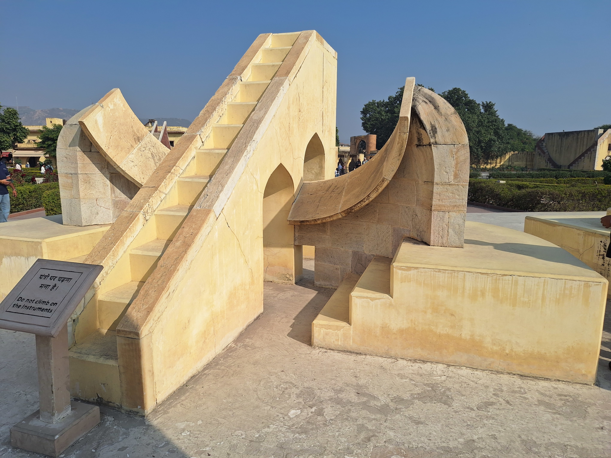 The intruments at the Observatory were constructed for the purpose of measuring time and tracking the positions of the Sun, Moon and naked-eye planets. There are 19 instruments and their impressive quality owes much to a major restoration undertaken in 1901. During the restoration, the "time-scales" of all instruments were converted from ancient units, ghatikas, palas and vipalas for example, to the modern hours, minutes and seconds. (See for example Wikipedia for more on the ancient units.)