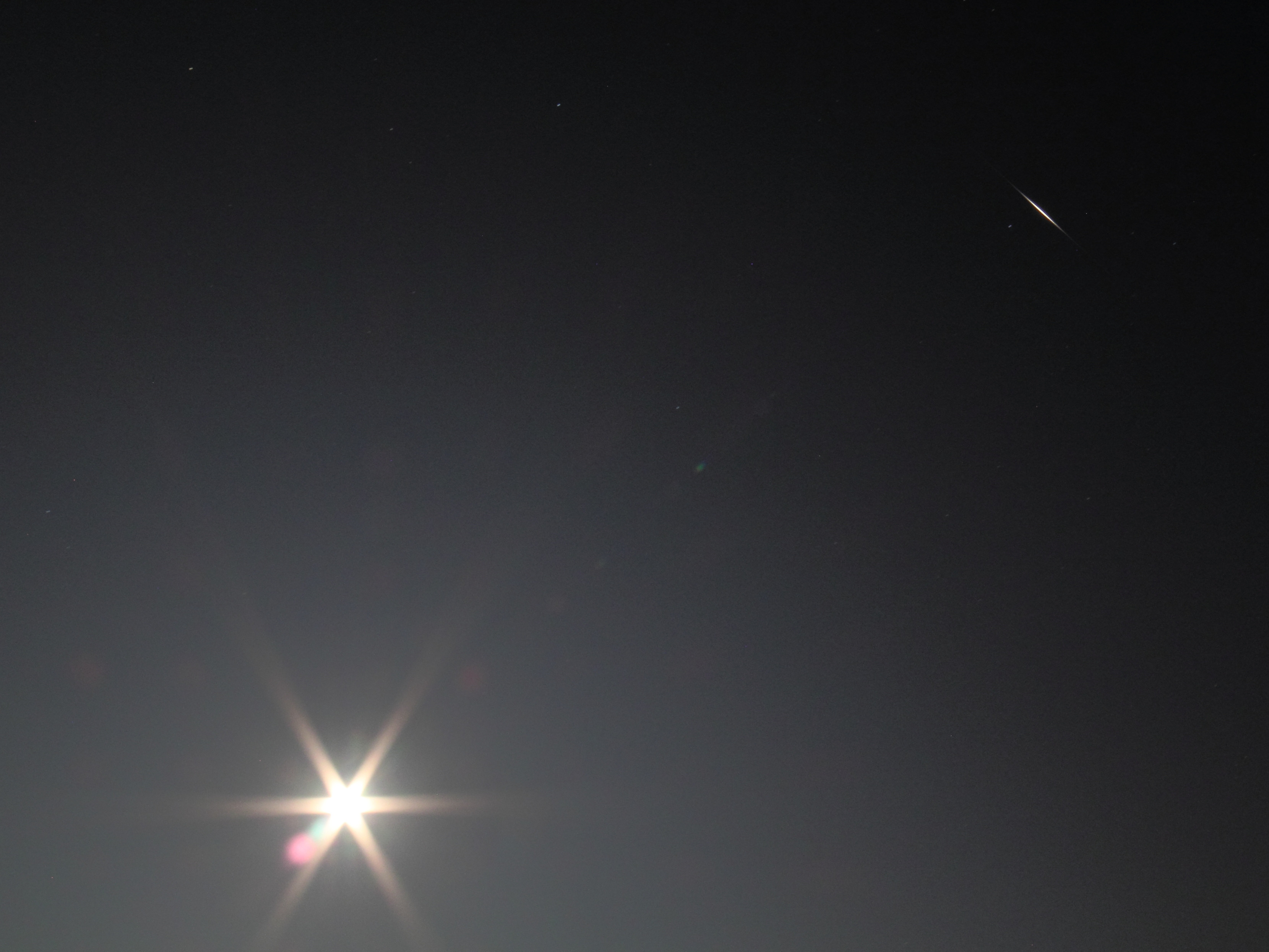 23:54 UT, Canon 30D camera with 18-55 mm lens. A flare from Iridium 39 is visible to the right of the image. Unfortunately, the image is marred by light pollution from Felixstowe; nevertheless it shows (just!), in addition to the flare, the Milky Way running through Sagittarius and Scutum.