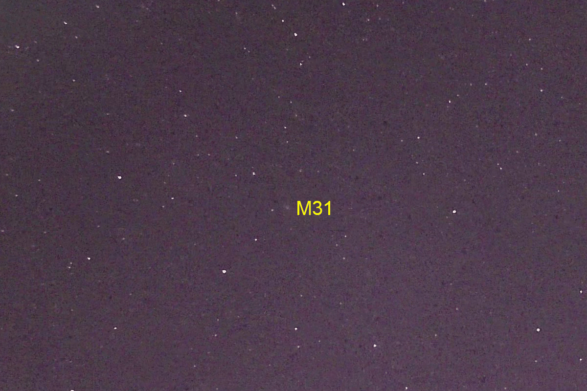 20:35 UT, Canon 1100D camera. A flare from Cosmos 1538. The Andromeda Galaxy, M31, is visible immediately below the flare.