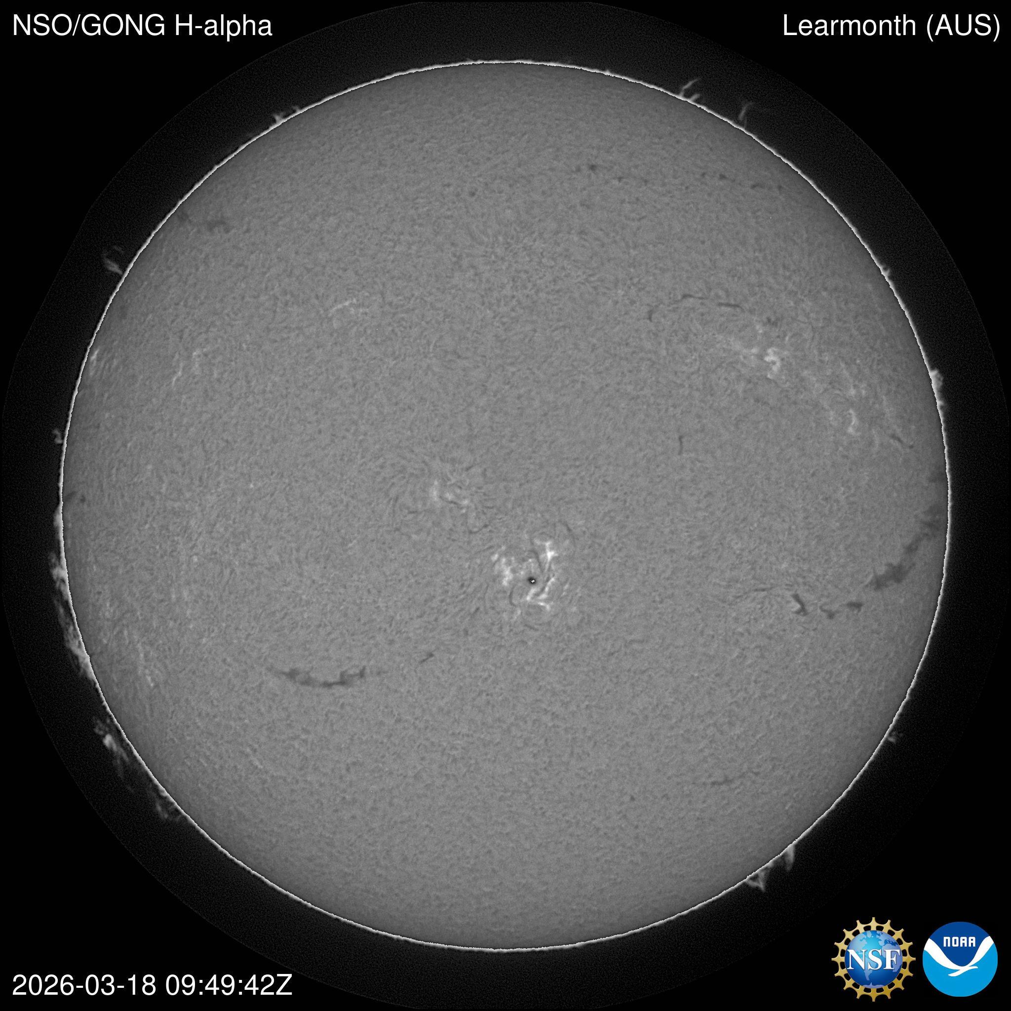 For comparison purposes, below right is an image taken on the same day by GONG (Global Oscillation Network Group) at the US National Solar Observatory.