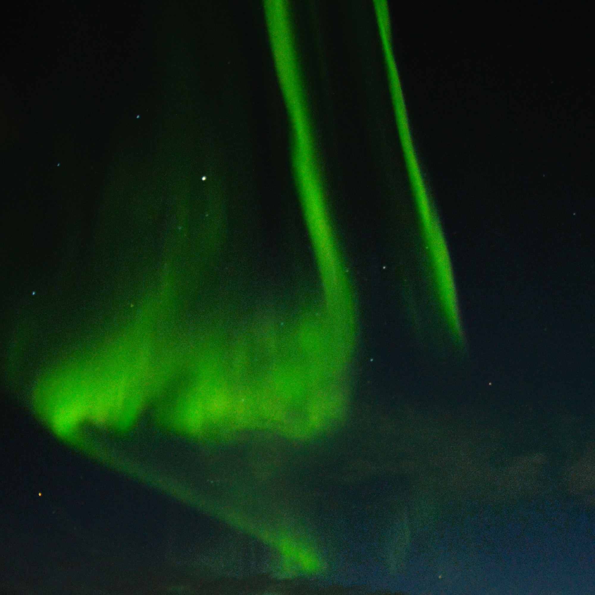 I then returned to my driveway for the remainder of the observing session. At 22:58 UT, the bottom edge of the arc of the aurora become less diffuse giving the appearance of a curtain-like structure. The curtain started to wave!