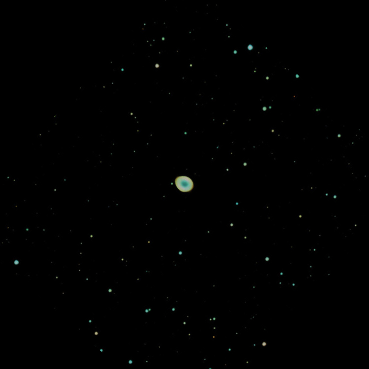 The planetary nebula (PN) NGC6543, in the constellation Draco, was discovered by William Heschel on 15 February 1786. It was the first PN investigated spectroscopically by the English amateur astronomer William Huggins, who demonstrated that the body was gaseous and not stellar. Seestar S50 "smart" telescope. A stack of 42x10 s frames.