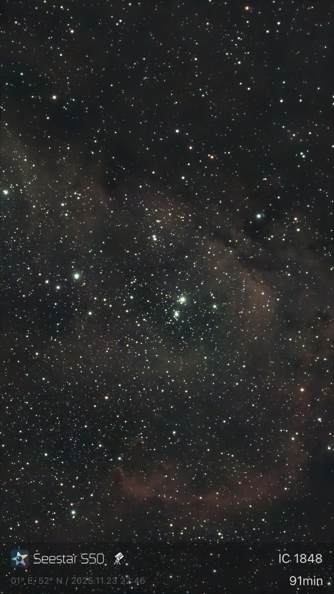 Seestar S50 "smart" telescope. Noise removed using the Seestar app, then further post-processing via the Motorola G31 camera app.