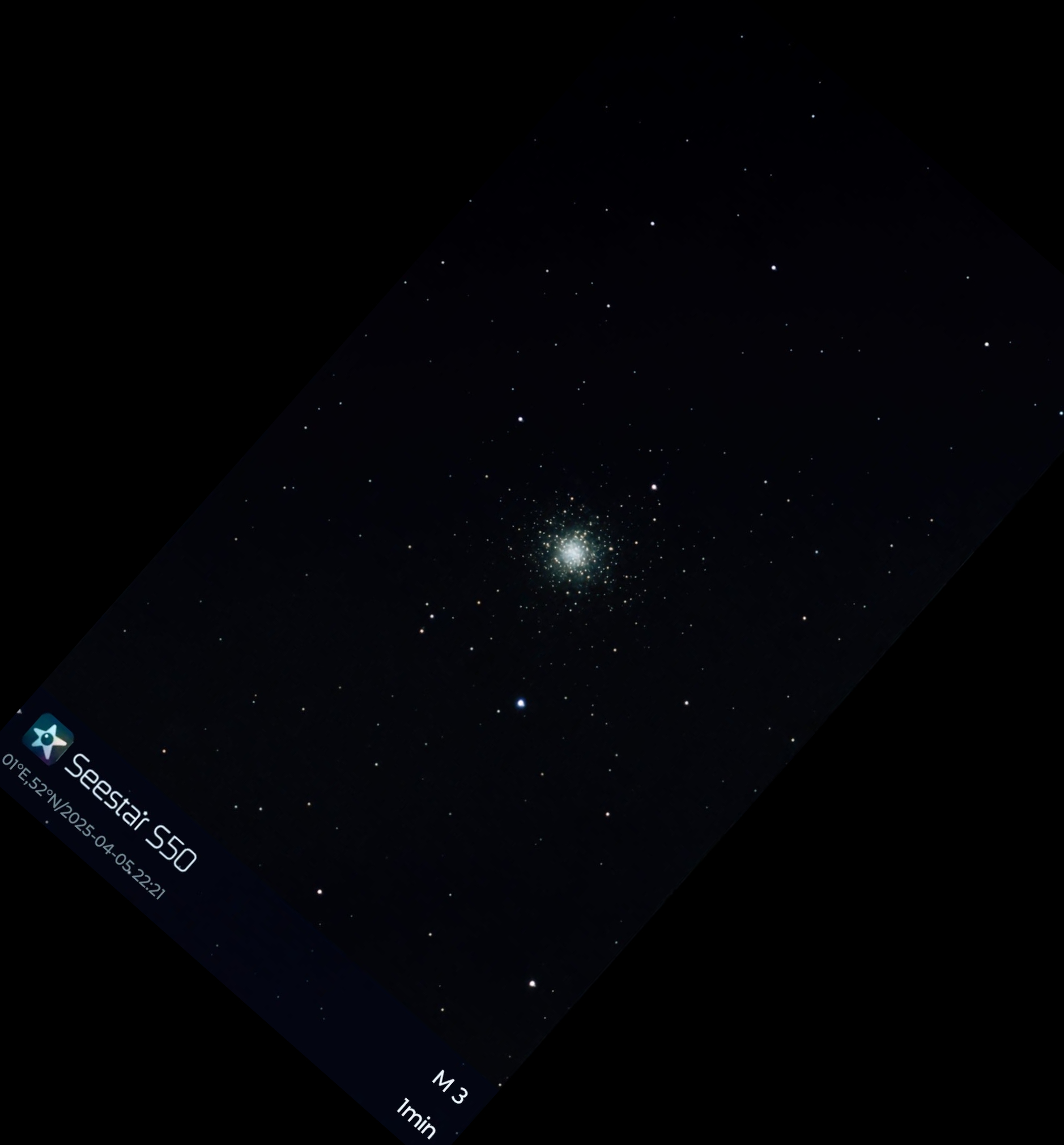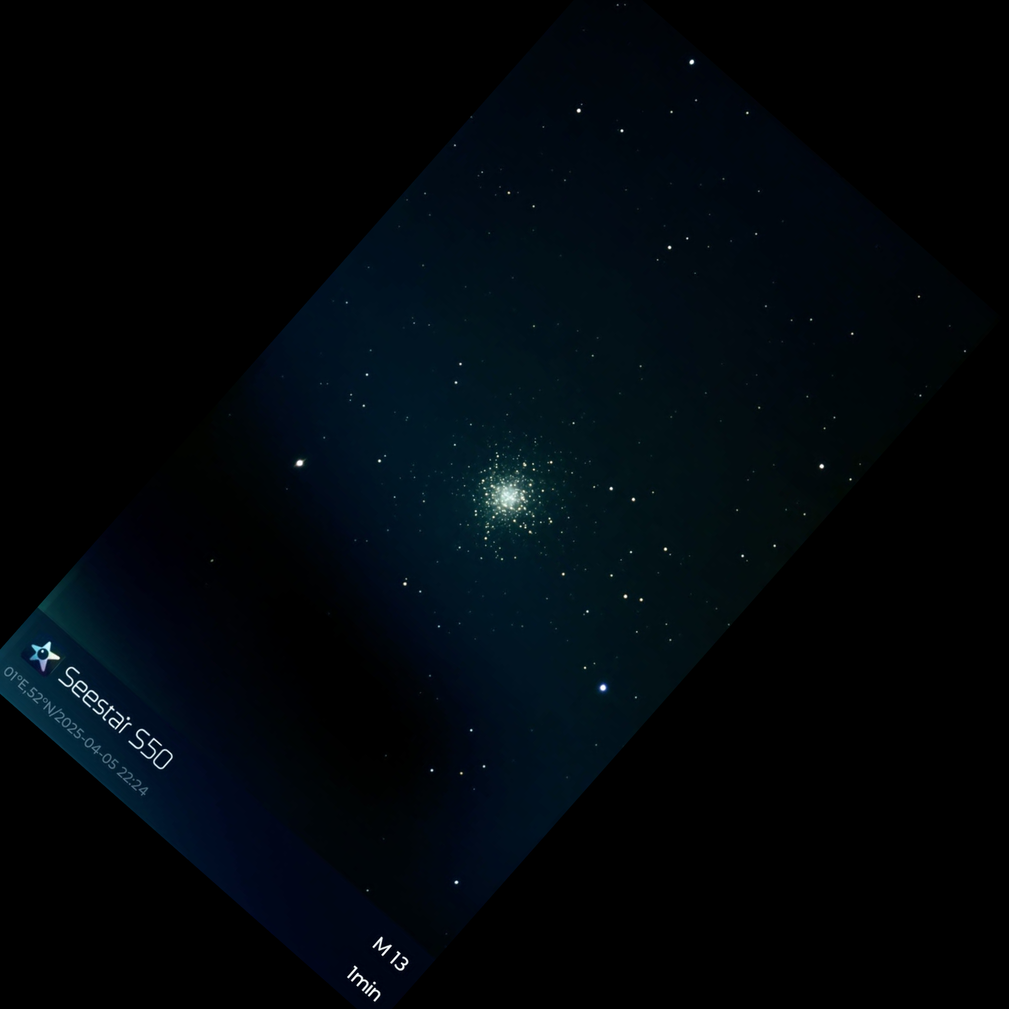 Seestar S50 "smart" telescope. Six 10 s frames. Image post-processed using Motorola G31 Android camera app.