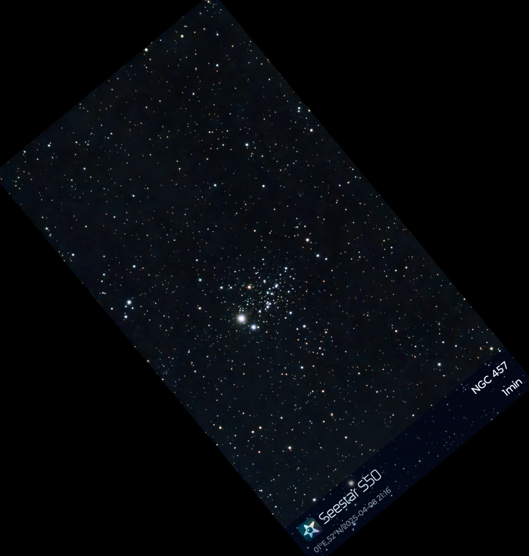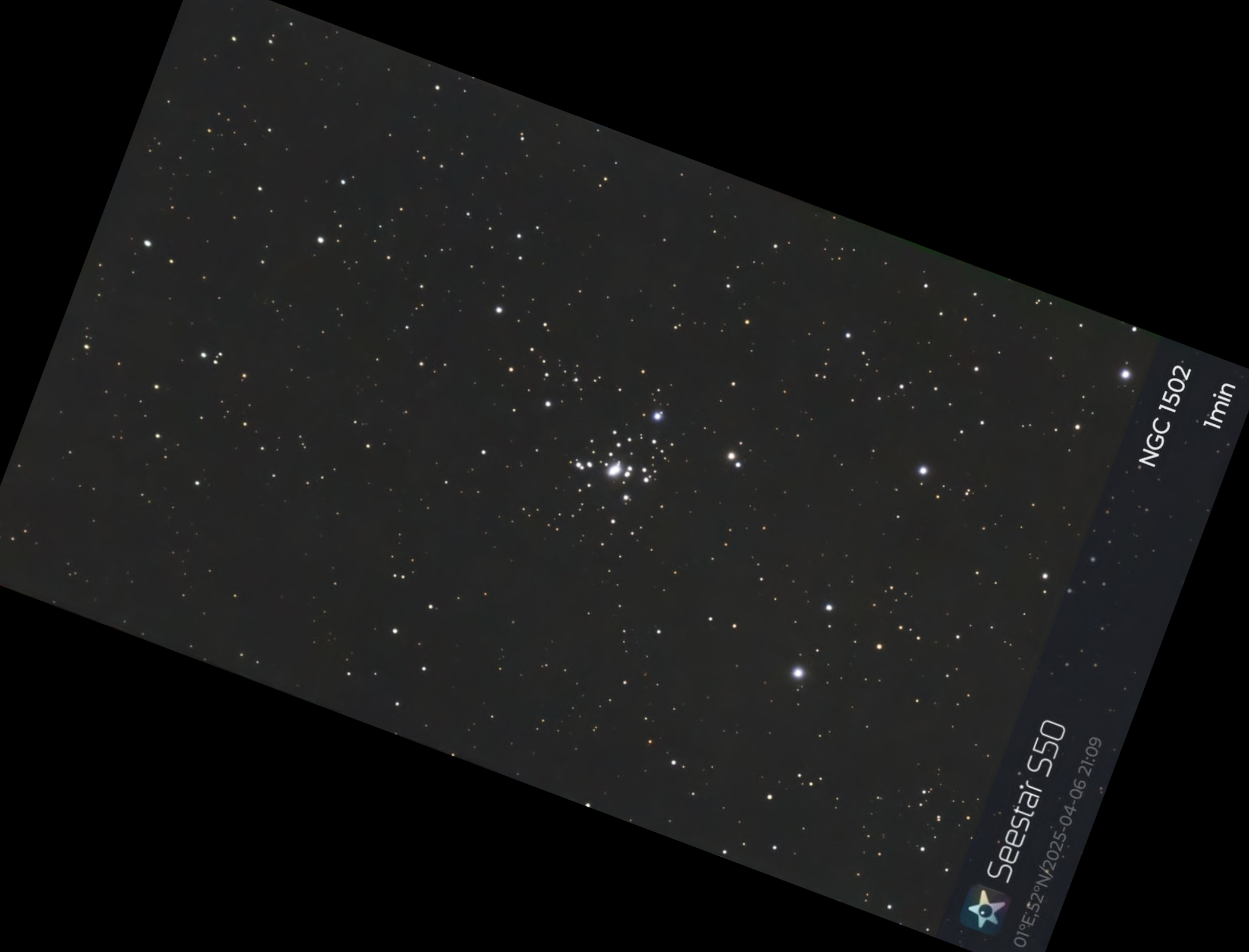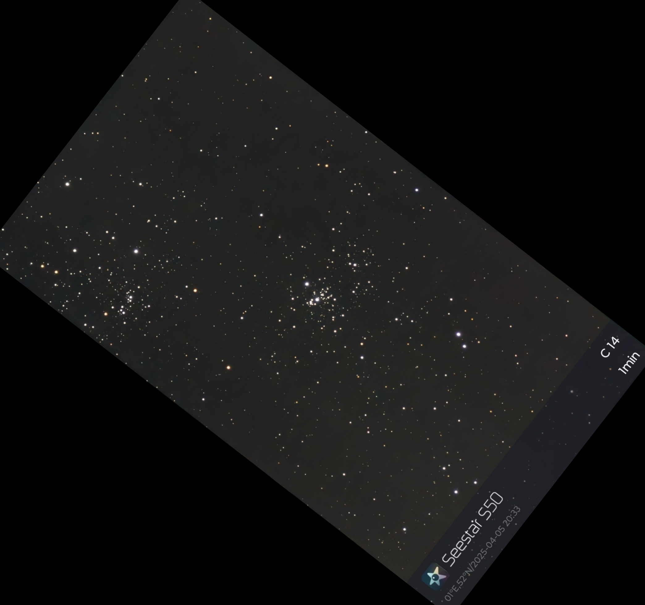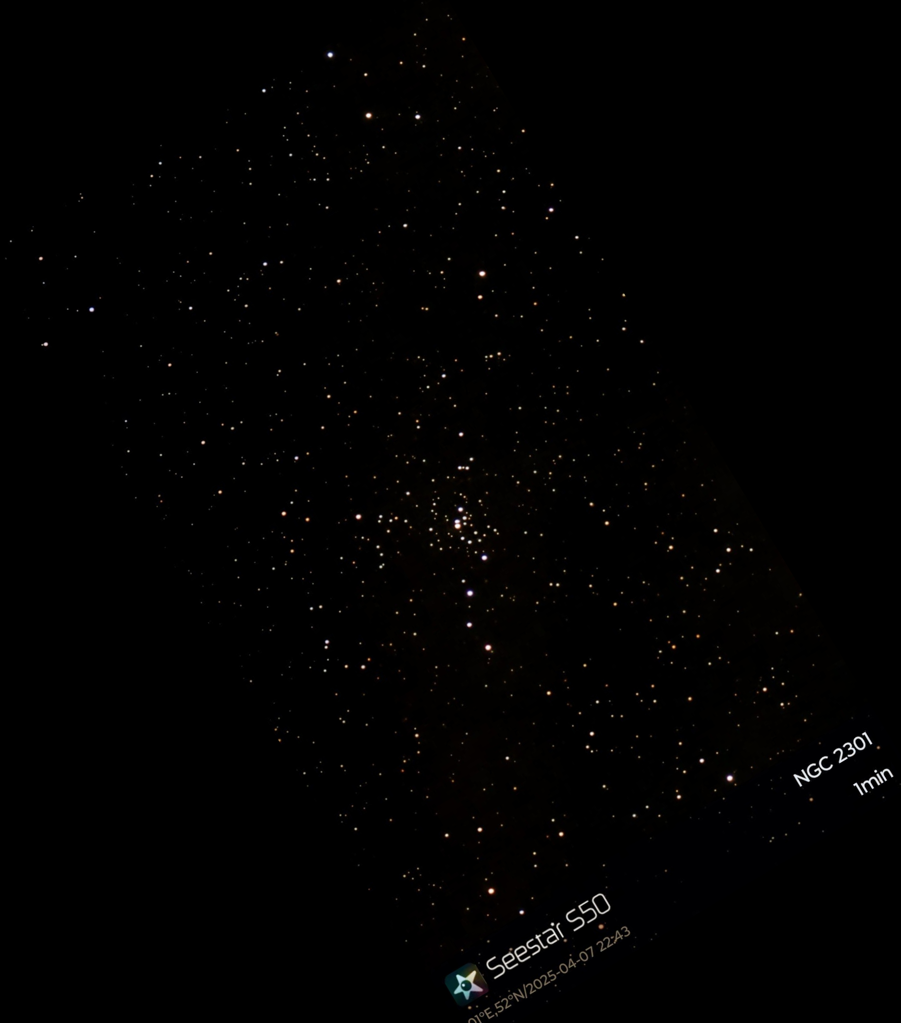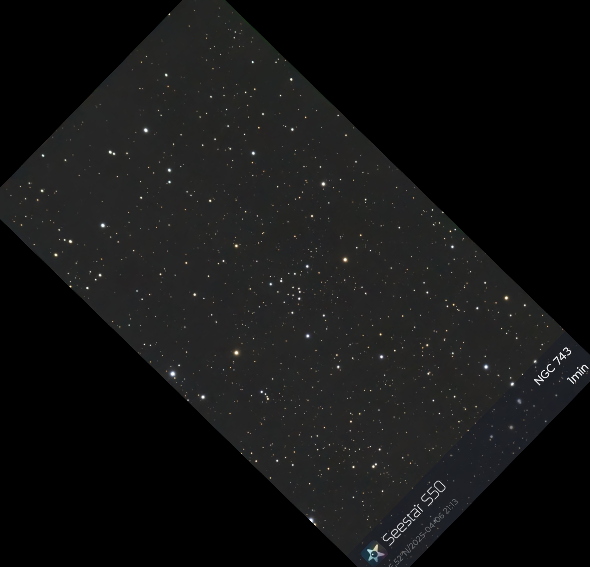 Seestar S50 "smart" telescope. Six 10 s frames. The cluster is sometimes referred to as the "37 cluster" because of the striking resemblance of the main stars to the number 37.