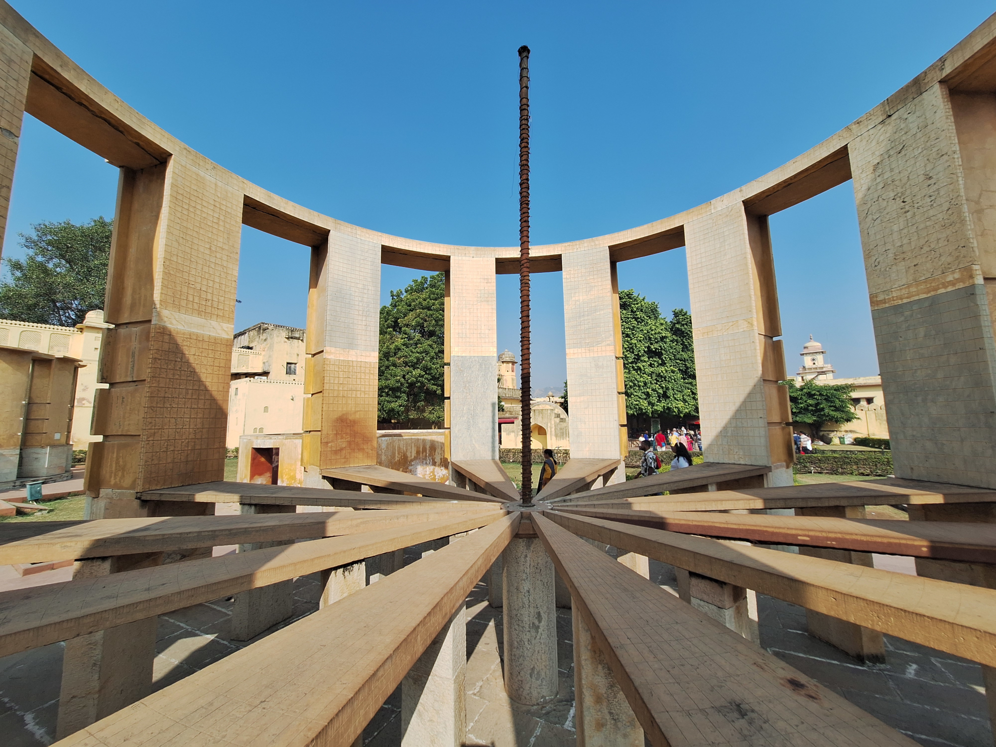 The intruments at the Observatory were constructed for the purpose of measuring time and tracking the positions of the Sun, Moon and naked-eye planets. There are 19 instruments and their impressive quality owes much to a major restoration undertaken in 1901. During the restoration, the "time-scales" of all instruments were converted from ancient units, ghatikas, palas and vipalas for example, to the modern hours, minutes and seconds. (See for example Wikipedia for more on the ancient units.)
