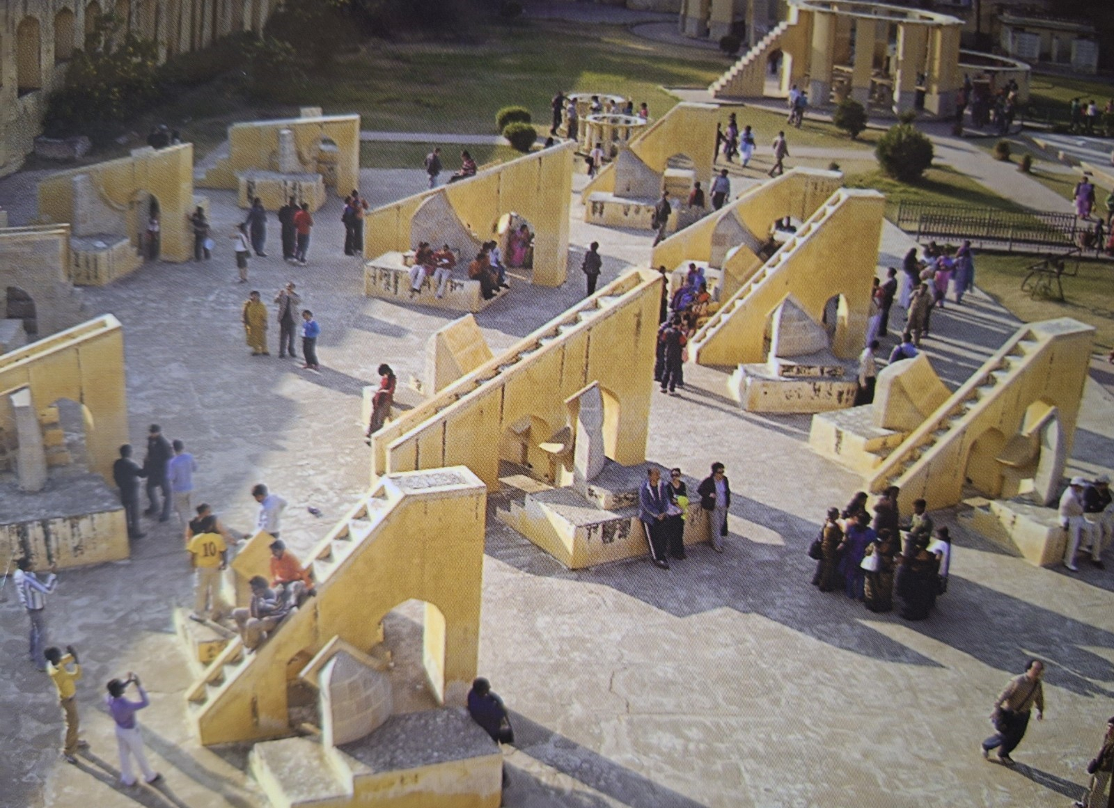 Before describing the Observatory, we need to review what astronomy meant to the Hindu people. In Hindu belief, all living creatures (vegetable as well as "living") are formed of five elements (Tatvas), namely fire, air, water, earth and sky and their actions are governed by the motions of heavenly bodies. Hindus believe that key decisions (when/who to marry, when to change jobs etc…) in life are governed by astronomical circumstances linked to e.g. the time and place of the individual's birth. Engagement with "wise men" concerning matters astrological is common in India before significant decisions are made. Ancient observatories in India were therefore constructed to enable accurate measurement of the position of astronomical objects. Position and time were the essential information; there was no attempt to understand the nature of the objects themselves. The objects of interest, for Jantar Mantar at least, were Mercury, Venus, Mars, Jupiter and Saturn (the known planets in 1716 AD), together with the Moon and Sun.