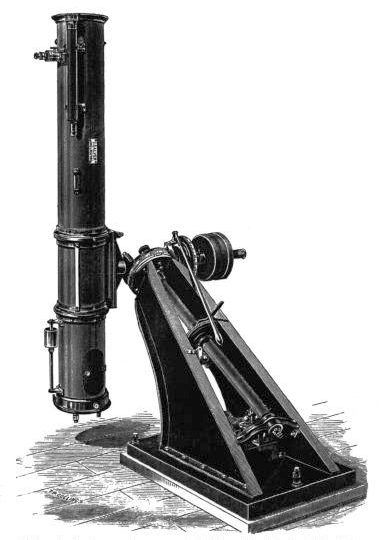 The instrument is on a mount of the Berthon type, popular with many Victorian amateurs. It is described in the 4th edition of Hints on Silvered Glass Reflecting Telescopes, 1884.