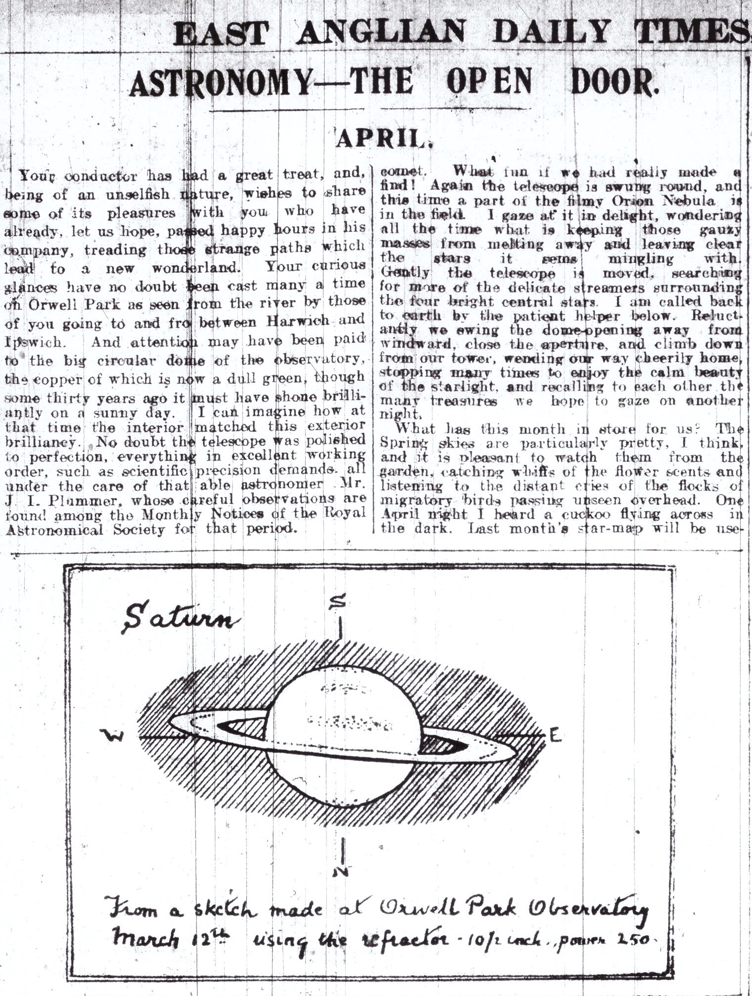 Cook published the following articles in the East Anglian Daily Times under the heading Astronomy - The Open Door.