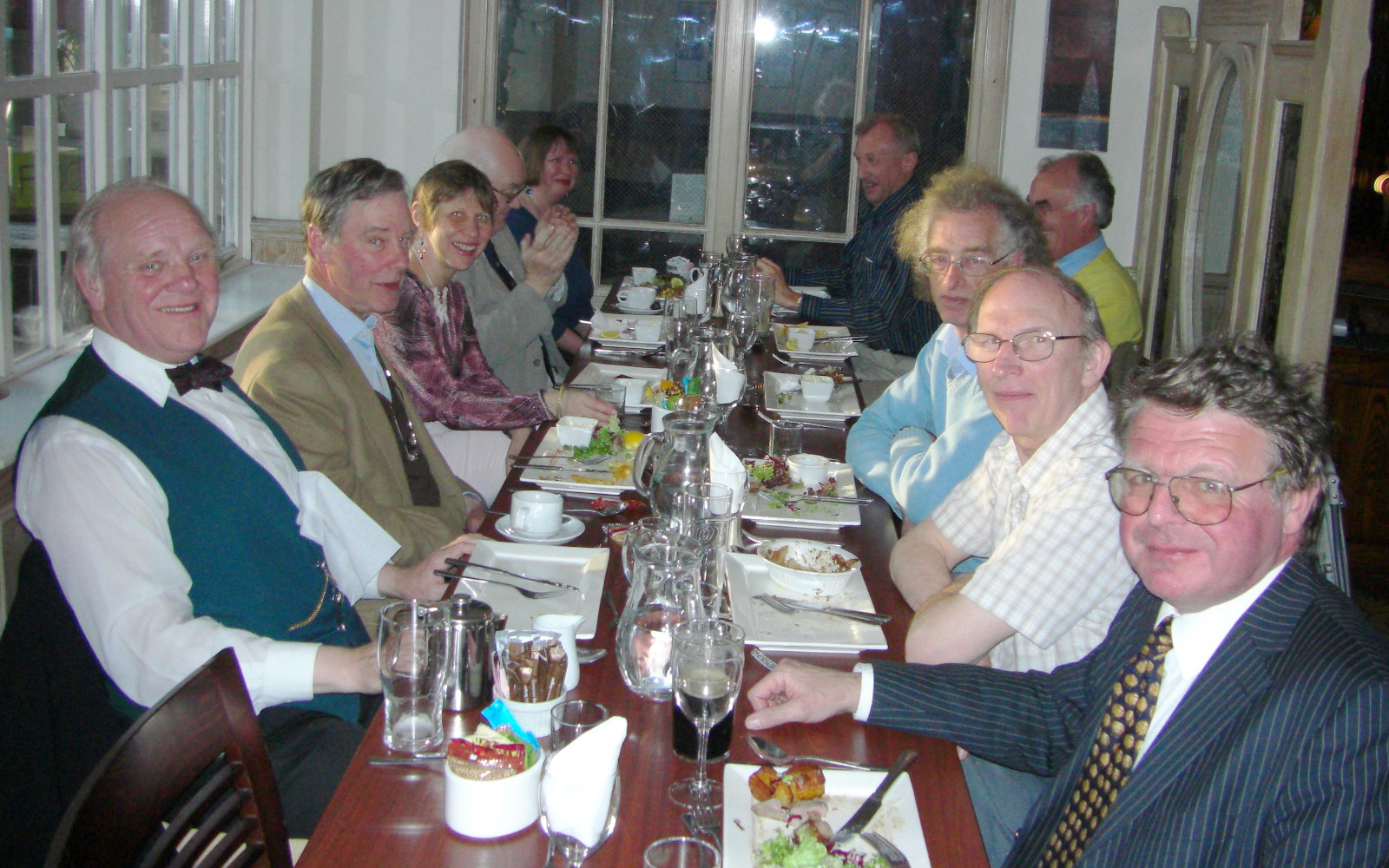 Pre-lecture meal on 23 April 2010. Clockwise from front left: Allan Chapman, Peregrine Bryant, Tina Hammond, Paul Whiting, Lynne Morley, James Appleton, Simon Dodsworth, Roy Gooding, Dave Payne, Peter Hingley.