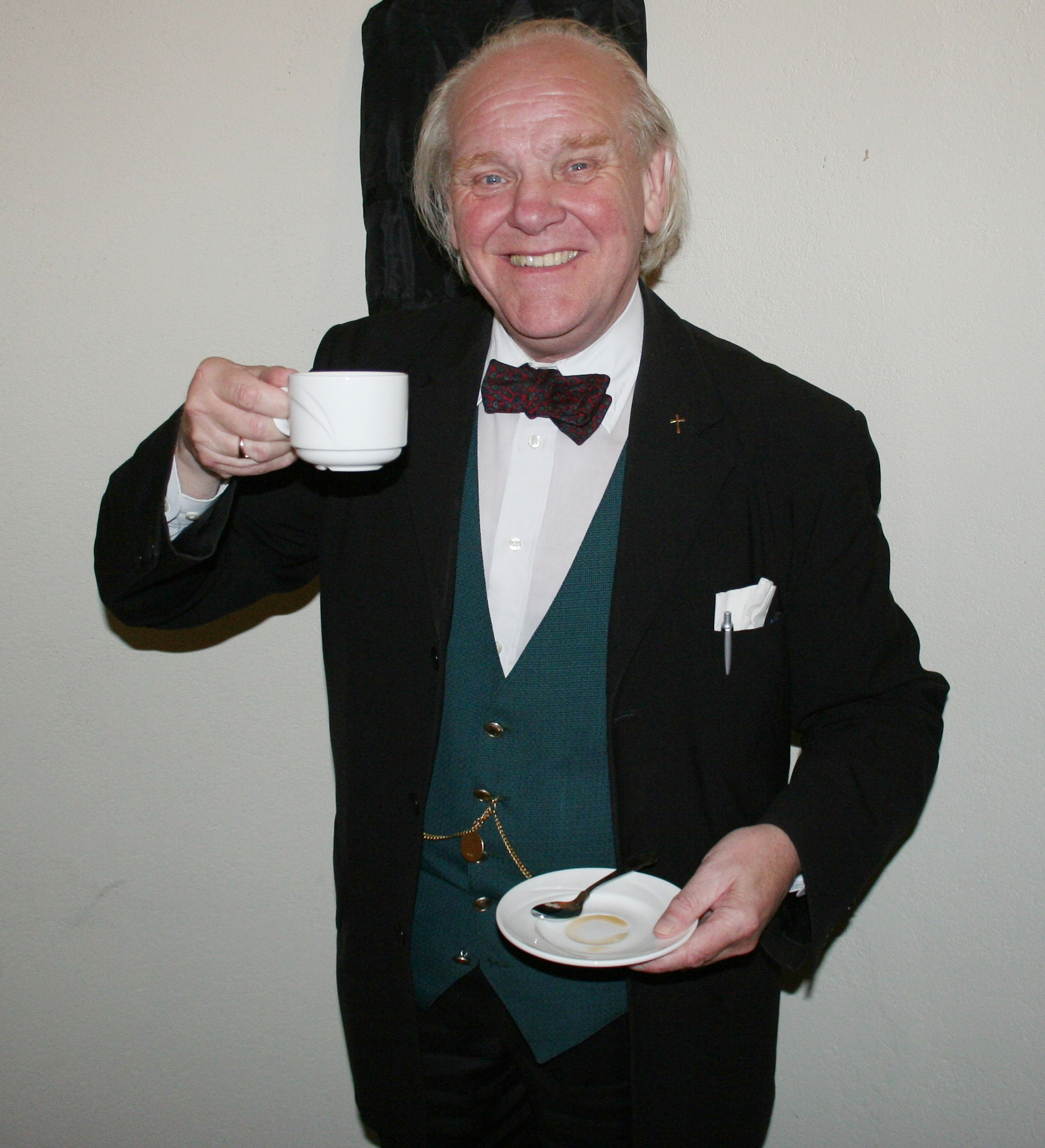 Members of OASI enjoyed Allan's company at several meals in Ipswich when he visited us. It was particularly important that the venues hosting the meals could supply numerous cups of good old-fashioned tea. At a dinner with several members of OASI at the Holiday Inn in Ipswich, Allan was particularly pleased to be provided with a specially arranged bottomless* teapot.