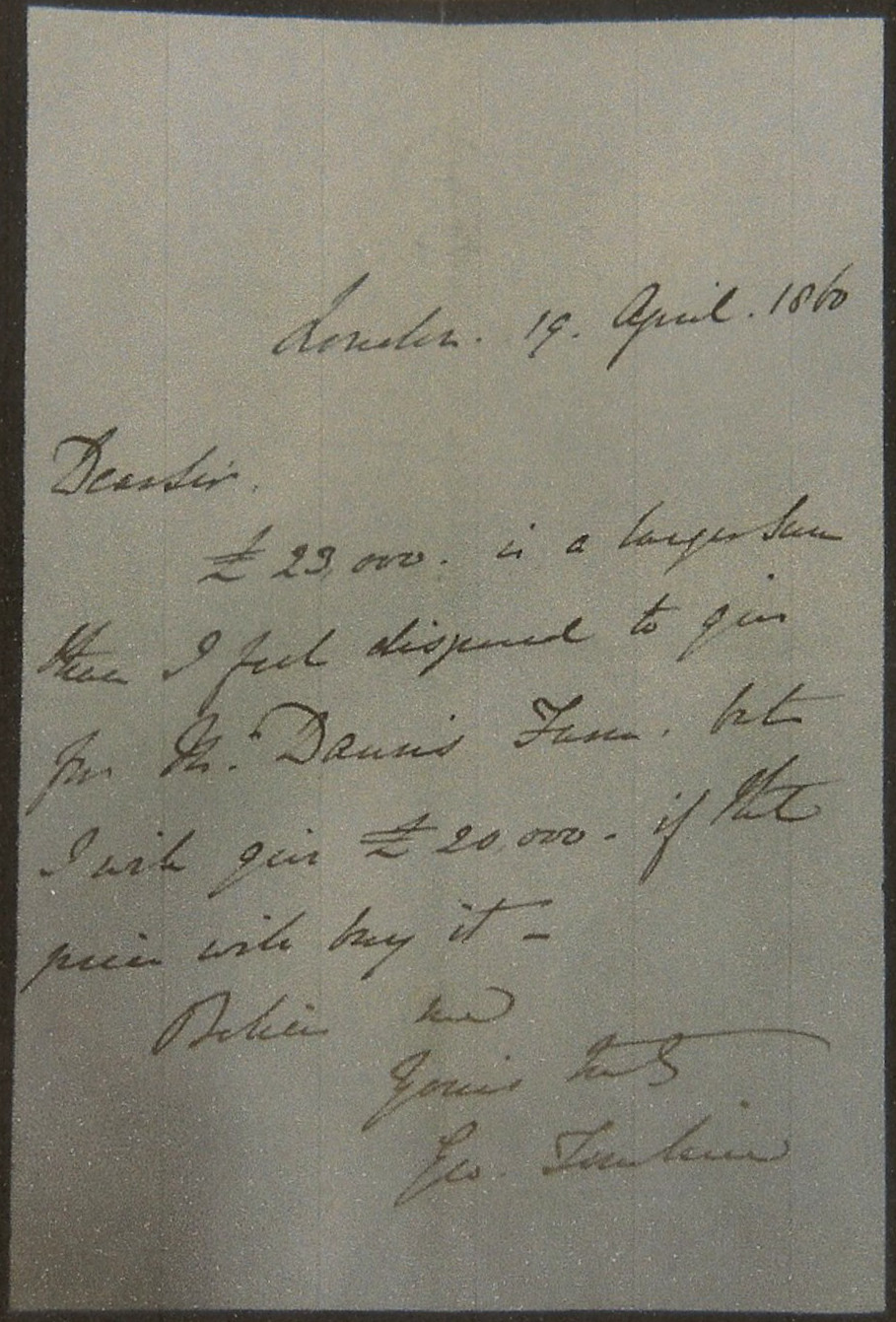 Tomline also bought properties and land in Lincolnshire, preferring to do so anonymously, using W H Daubney, one-time mayor of Grimsby, as intermediary. Letters between the two men in Lincoln Records Office [20] indicate that Tomline cut his litigious teeth in Lincolnshire and that his acquisitions were not always met with public approval, likely because the general consensus was that he owned too much land. The letters are strangely formal to modern eyes, most starting "Dear Sir", even though it was clear that the two men knew one another well. Many end with "Believe Me", nowadays reserved for correspondence with ambassadors. The content ranges from purely social to purely business and a combination of the two, and it is clear that the two men were great friends and that Tomline respected Daubney hugely, a rare accolade. Some interesting passages from the correspondence are as follows: