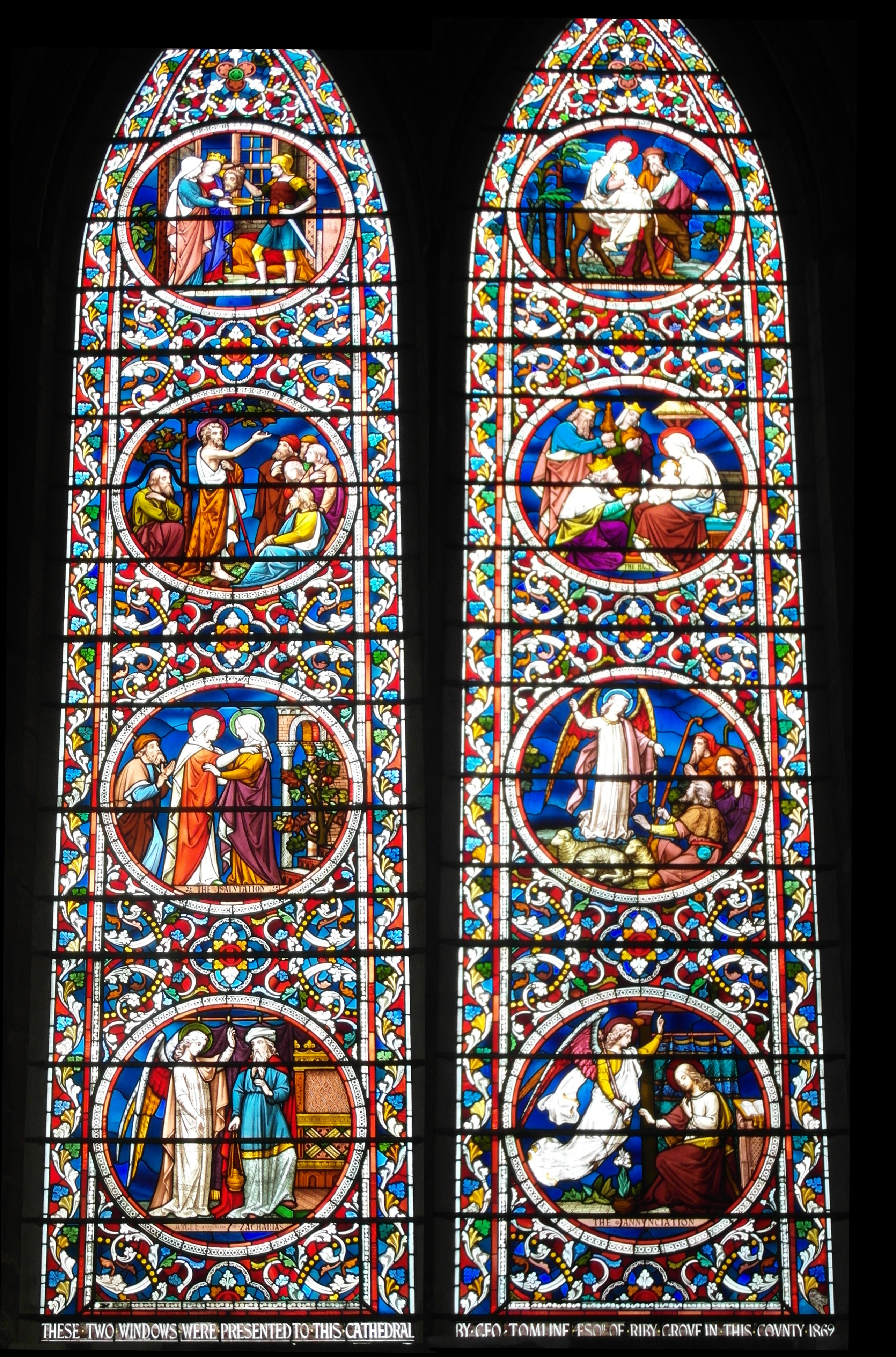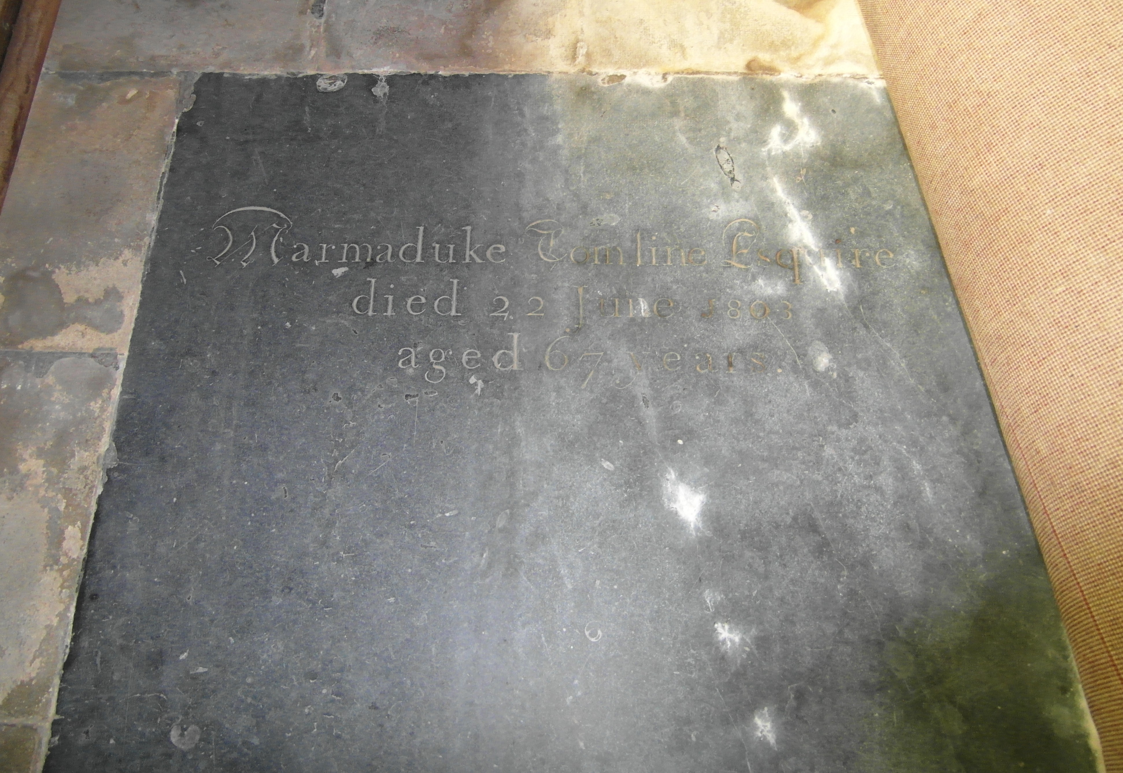 Behind the altar in Riby St Edmunds is a large stained glass window depicting an Ascension scene; an inscription at the bottom commemorates Tomline's generosity in rebuilding the church. Nearby, a flagstone commemorates Marmaduke Tomline and there are other memorials to the family elsewhere in the church [23]. Tomline is also remembered in two stained glass windows which he presented to Lincoln Cathedral in 1869.
