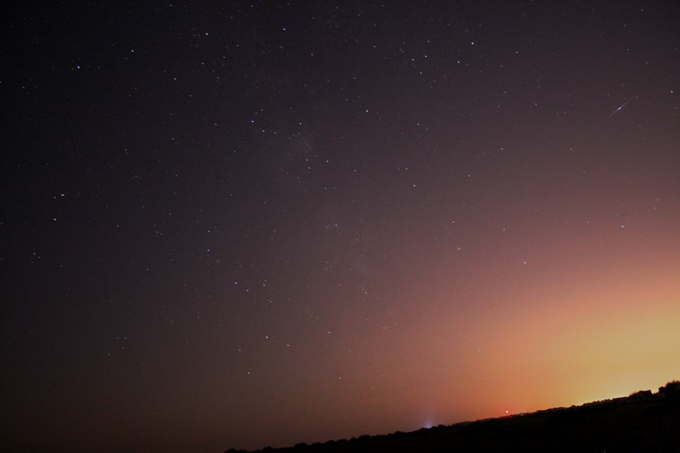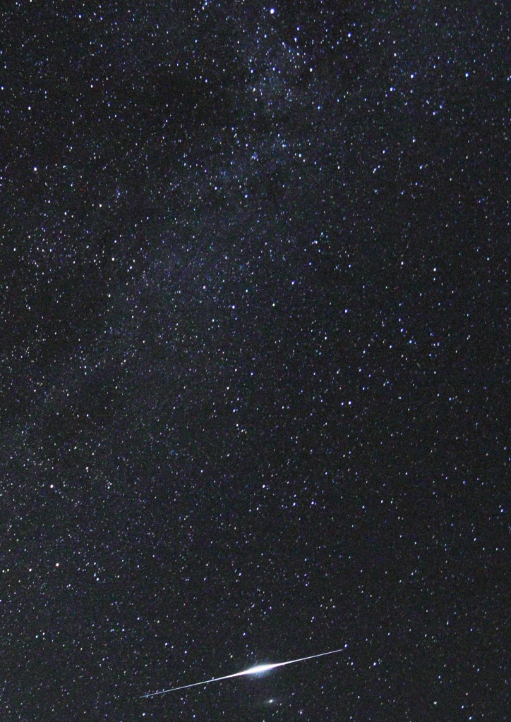 23:54 UT, Canon 30D camera with 18-55 mm lens. A flare from Iridium 39 is visible to the right of the image. Unfortunately, the image is marred by light pollution from Felixstowe; nevertheless it shows (just!), in addition to the flare, the Milky Way running through Sagittarius and Scutum.