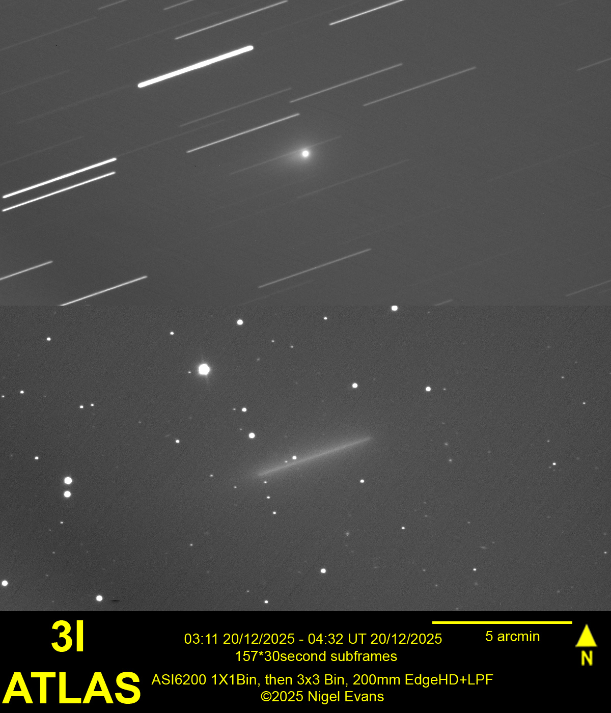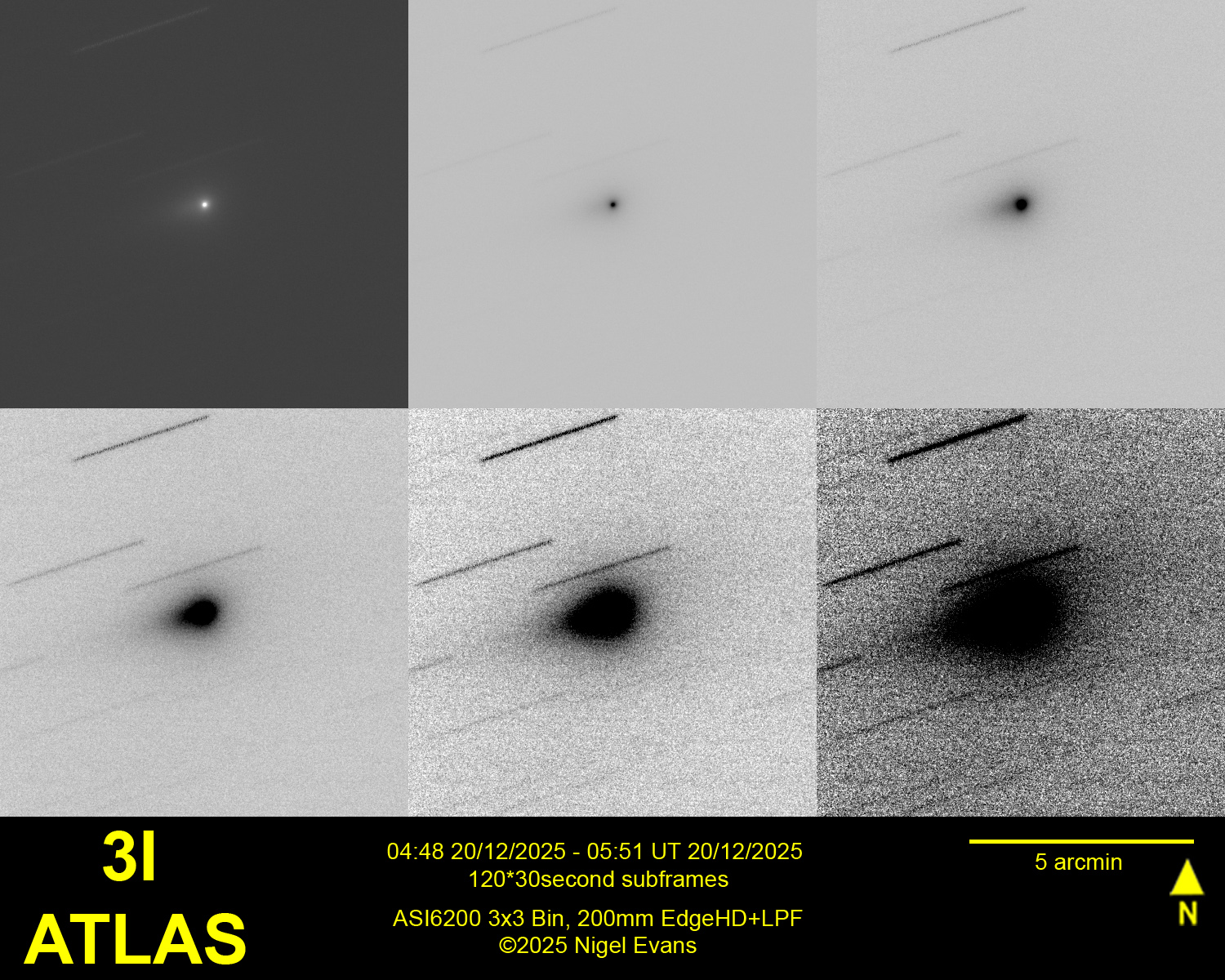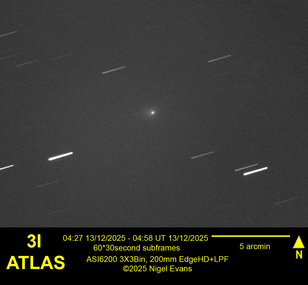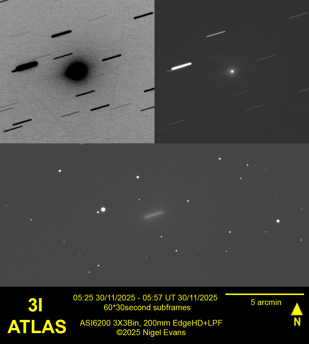 To me, comet 3I continues to exhibit a bright nucleus at about magnitude 12.5 and nothing else, as shown in the image below. However on the BAA website is an image taken at approximately the same time, from rural Spain, showing considerable detail.