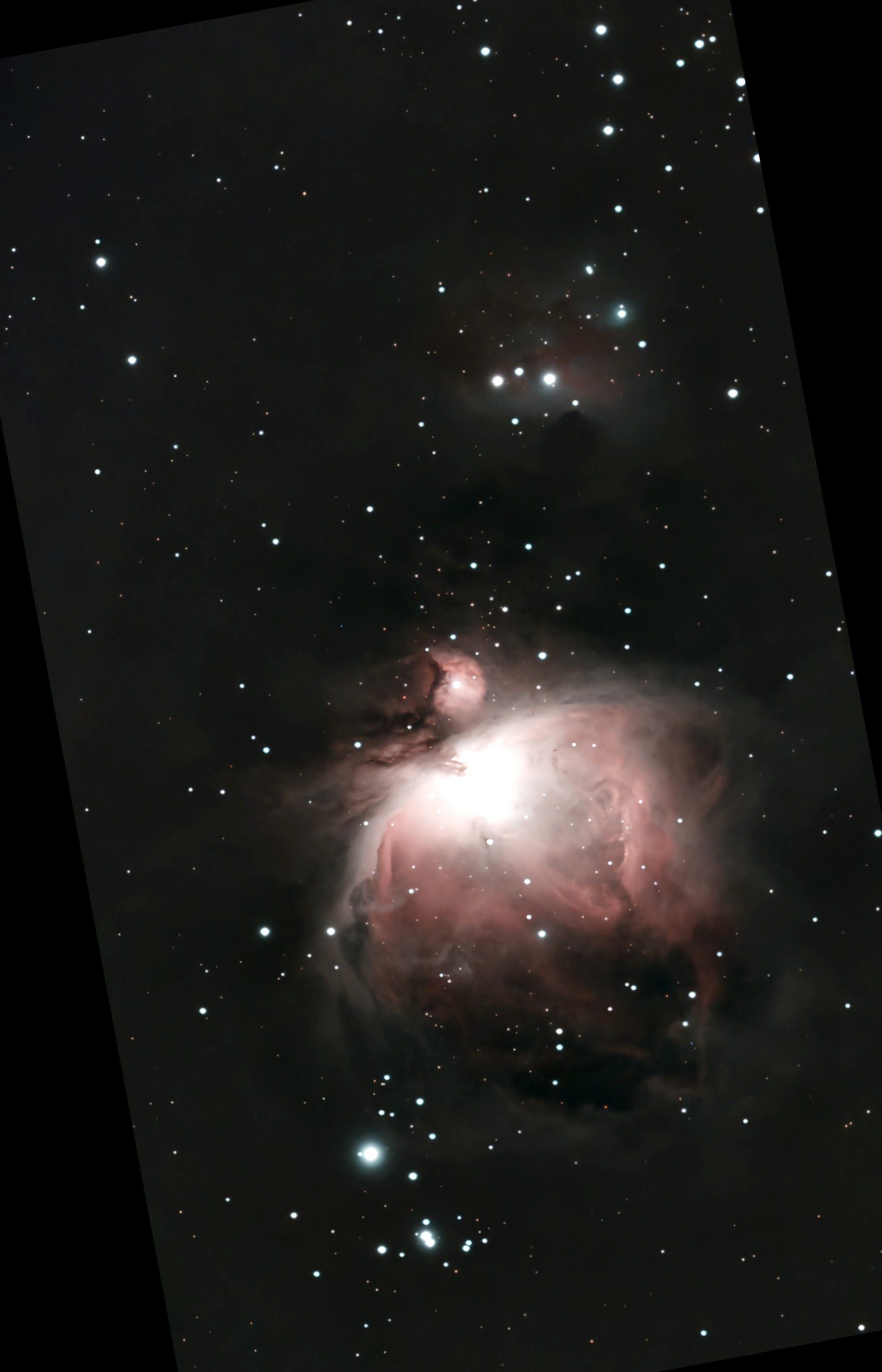 Seestar S50 "smart" telescope, used in panoramic mode to capture the whole area of M42 and M43. Twenty minutes of 10 s frames.