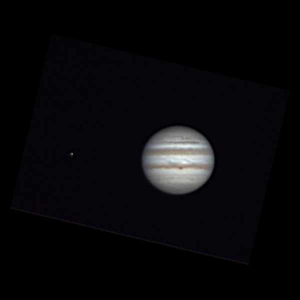 Jupiter at 22:00 UT. The GRS appears very red. 235 mm f/10 SCT with Canon 60Da camera in movie crop mode. 150 frames stacked in Lynkeos (Mac) with little subsequent processing.