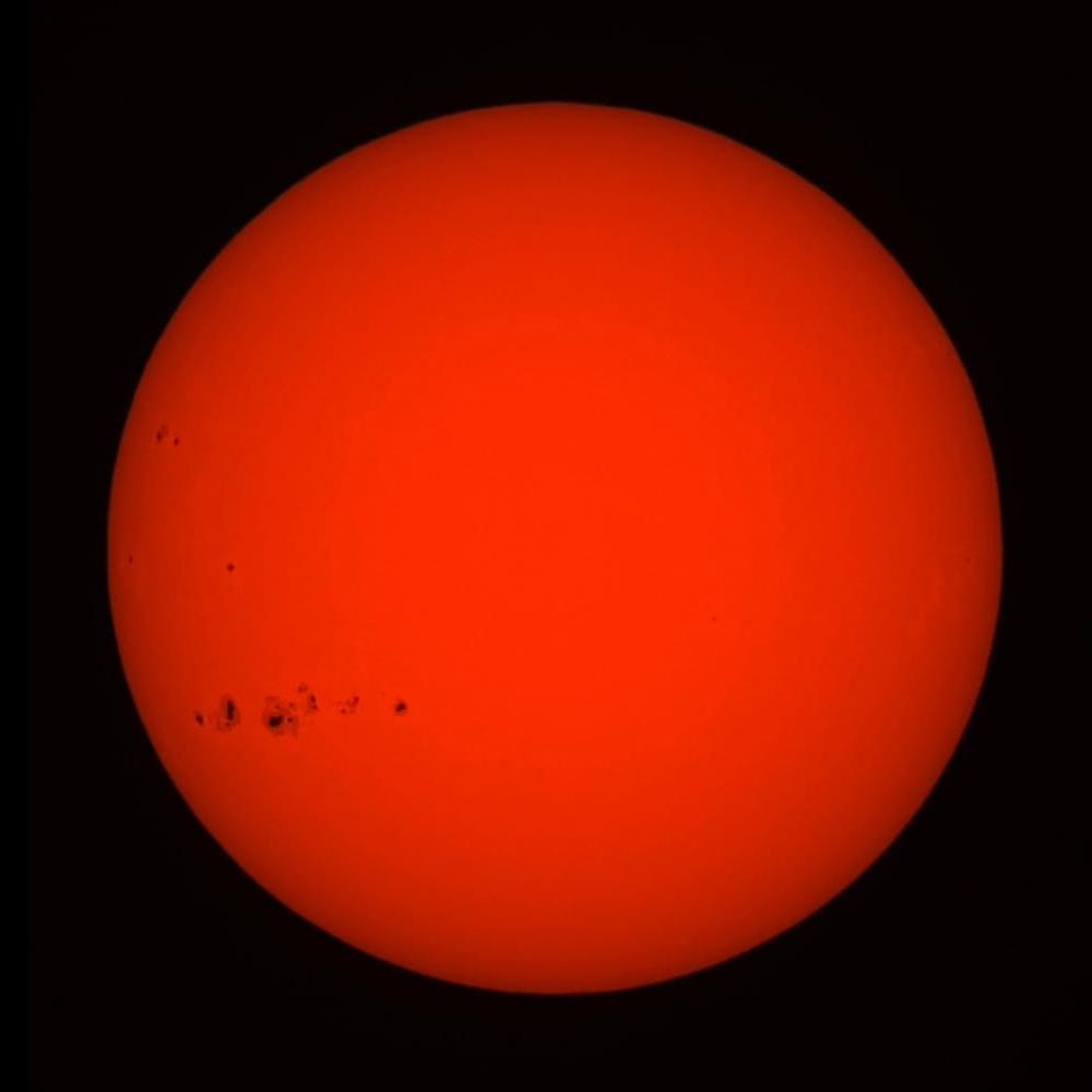 The Sun imaged in white light with an Altair Starwave 80ED refractor and ZWO ASI 462MM camera.